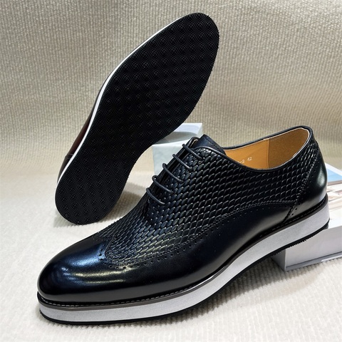 İtalyan High-End erkek Oxford Sneakers inek deri spor ayakkabı kaymaz taban ile rahat iş düğün yaz dantel-up tasarım